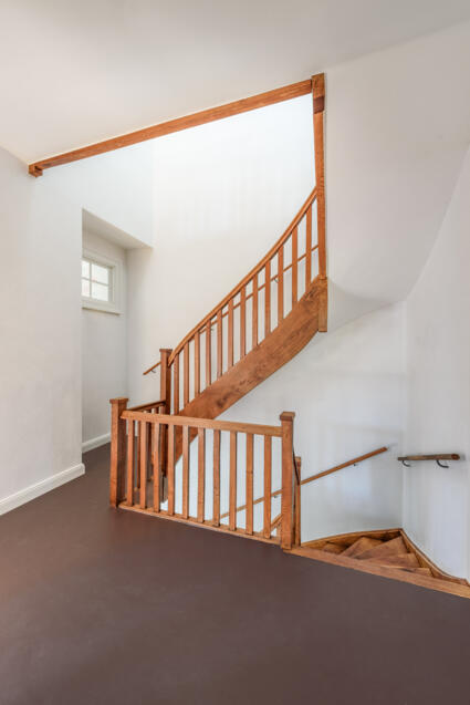 Ein historisches Oberlicht aus Glasbausteinen von 1904 wurde nachempfunden und mit einem schmalen Steg verbunden eingebaut, sodass das Treppenhaus jetzt mit mehr Tageslicht versorgt wird. Ganz besondere Details, wie farbige Mosaik-Verglasungen, die behutsam aufgearbeitet, restauriert und repariert wurden, machen das Objekt zu einem außergewöhnlichem Wohnort.