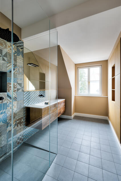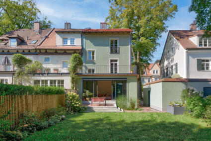 Das Reihenendhaus mit Erker, erbaut zwischen 1892 und 1897 von den Architekten Heilmann und Littmann, hat in den letzten Jahrzehnten viele Veränderungen durchlebt. Der Erhalt des historischen Charakters in Verbindung mit moderner Wohnqualität stand bei der Sanierung im Vordergrund. Der Umbau begann mit einer Teilentkernung und einer sorgfältigen Restaurierung der denkmalgeschützten Elemente. Alle ursprünglichen Baustoffe und Bauteile blieben dabei erhalten und wurden behutsam aufgearbeitet.