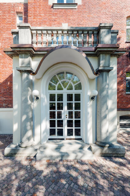 Die Sanierungsarbeiten umfassten die Erneuerung der kompletten Elektro- und Sanitärinstallation sowie aller Oberflächen im 2. Obergeschoss. Hier wurde die Fassade um einen Balkon und weitere Fenster nach historischem Vorbild ergänzt.