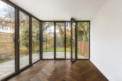 Beim Umbau und der Sanierung mit modernen Wohnansprüchen verlangten deshalb die strengen, denkmalschutzrechtlichen Auflagen nicht nur bei Bodenbelag und historischer Raumaufteilung einen gestalterischen Spagat. So musste sich der neu geschaffene Wintergarten-Anbau mit moderner Stahlfassade unter den bestehenden historischen Balkon einfügen.