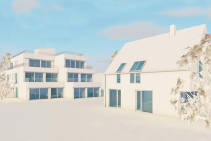 In München–Obermenzing entstand ein dreigeschossiges Mehrfamilienhaus mit fünf Wohneinheiten sowie ein Einfamilienhaus mit 200 m² Fläche. Durch einen Versprung im Baukörper verfügt jede Wohneinheit über einen großzügigen, nach Süden orientierten, versetzten Außenbereich. Gleichzeitig konnte so ein großer Laubbaum auf dem Grundstück erhalten bleiben.