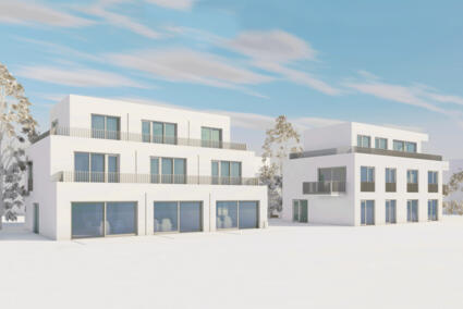 Für die Eigentümer eines 1070m² großen Grundstücks in München-Forstenried war die maximale bauliche Ausnutzung der Grundstücksfläche ein zentrales Anliegen. So wurde in engem Austausch mit den Bauherren ein Gebäudekomplex entwickelt, der aus einem Mehrfamilienhaus mit 7 Wohneinheiten, drei Reihenhäusern und einer Tiefgarage besteht. Die Reihenhäuser wurden terrassiert und die Geschosse zurückversetzt, um sonnige Balkone zu schaffen. Bodentief aufgeglaste Terrassentüren lassen das Tageslicht in das Erdgeschoß fließen. Die Realisierung erhöhter Schallschutzanforderungen kommt allen Bewohner zugute. Eine helle Besenputzfassade im EG und OG kontrastiert mit dem glatten Putz mit dunklem Anstrich im Dachgeschoss.
